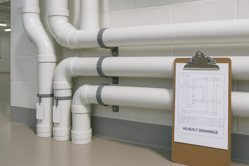 Documentation and Marking Photograph the tested system and create an as built drawing showing all pipe routes. This aids future maintenance and prevents accidental damage during renovations.