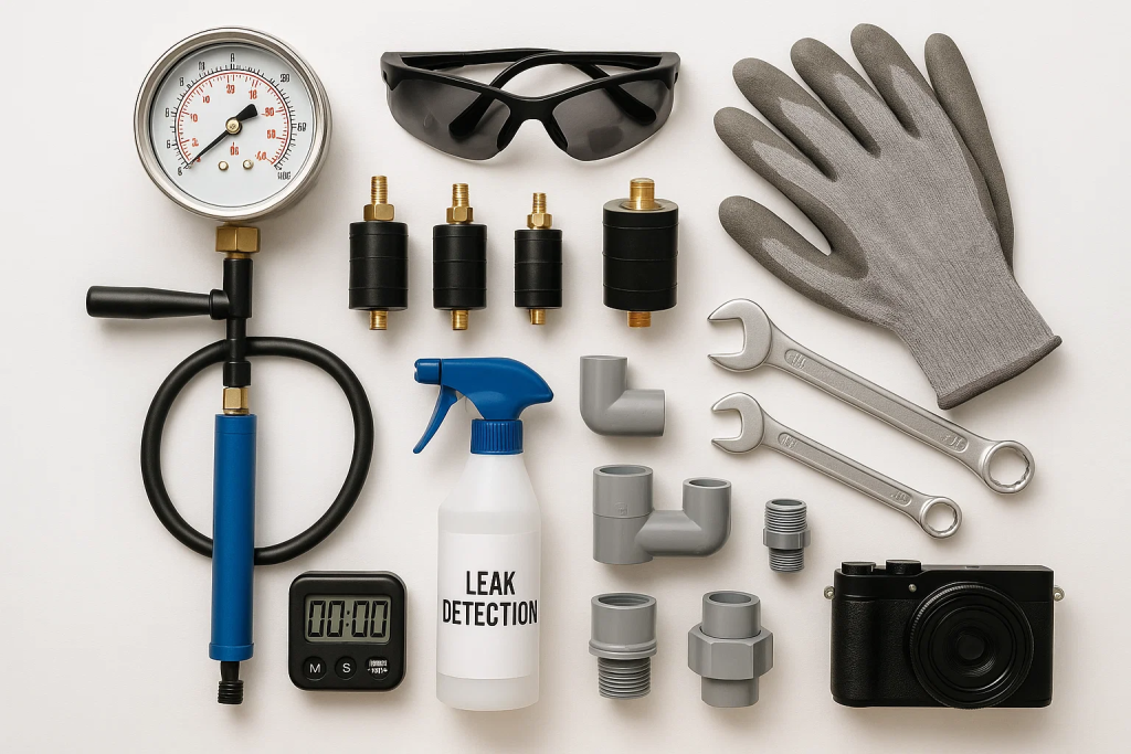 Proper preparation is half the battle when learning how to pressure test PVC pipe. Gather these essential tools before beginning: