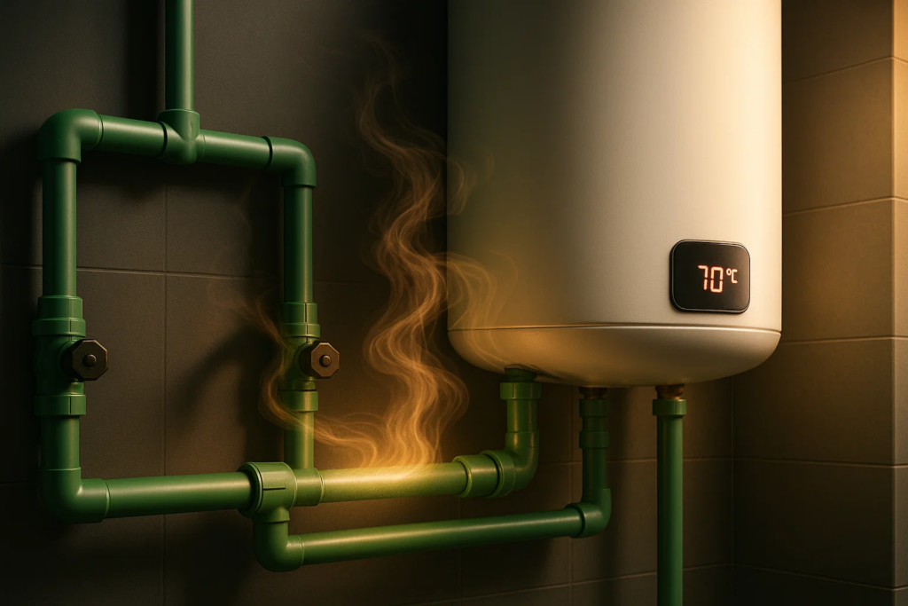 Additionally, PPR’s thermal fusion joining method creates homogeneous connections that are equally resistant to hot water, eliminating the risk of joint failures common in systems using mechanical connections or adhesives that can break down under heat.