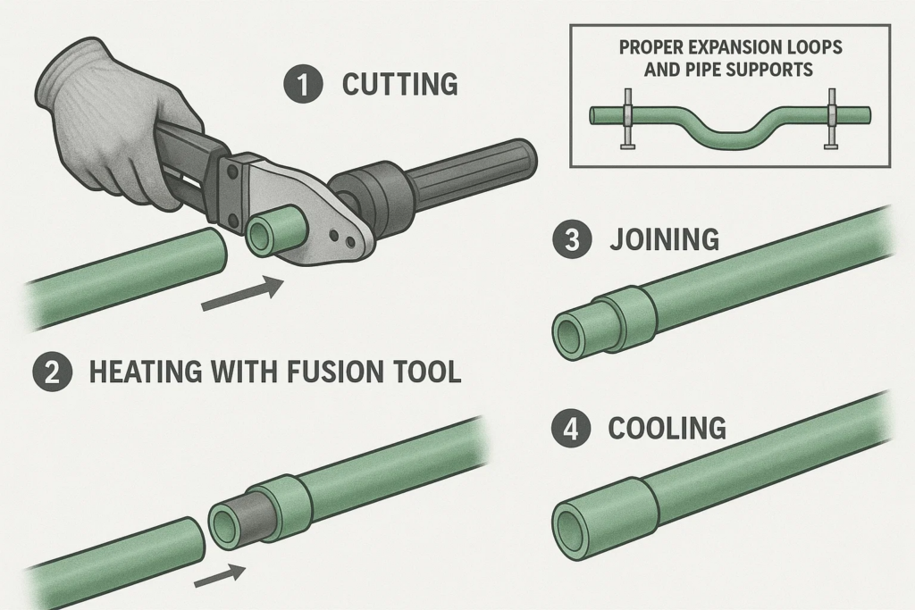 Installing PPR pipe systems for hot and cold water applications requires specific techniques and considerations to ensure optimal performance:
