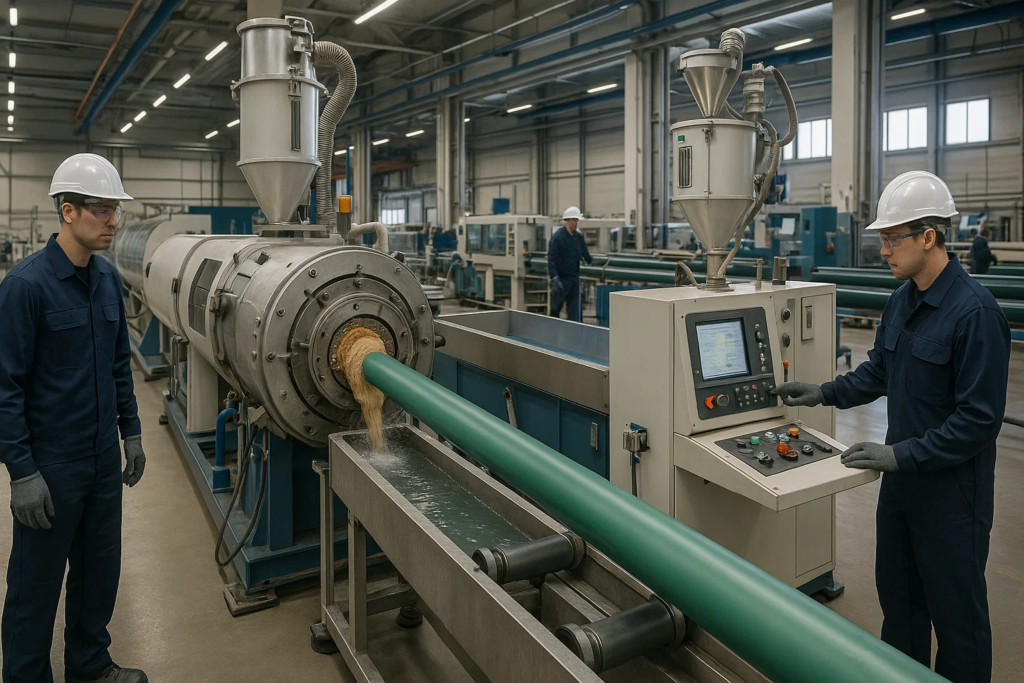 The production of PPR pipes involves several key steps: