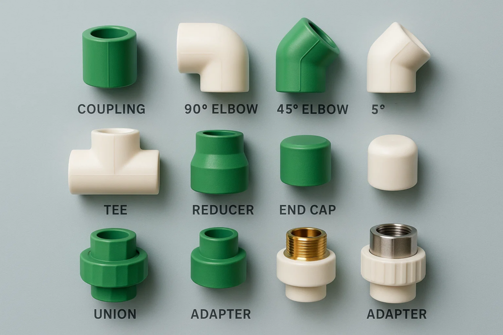 The most common types of PPR pipe fittings include:
